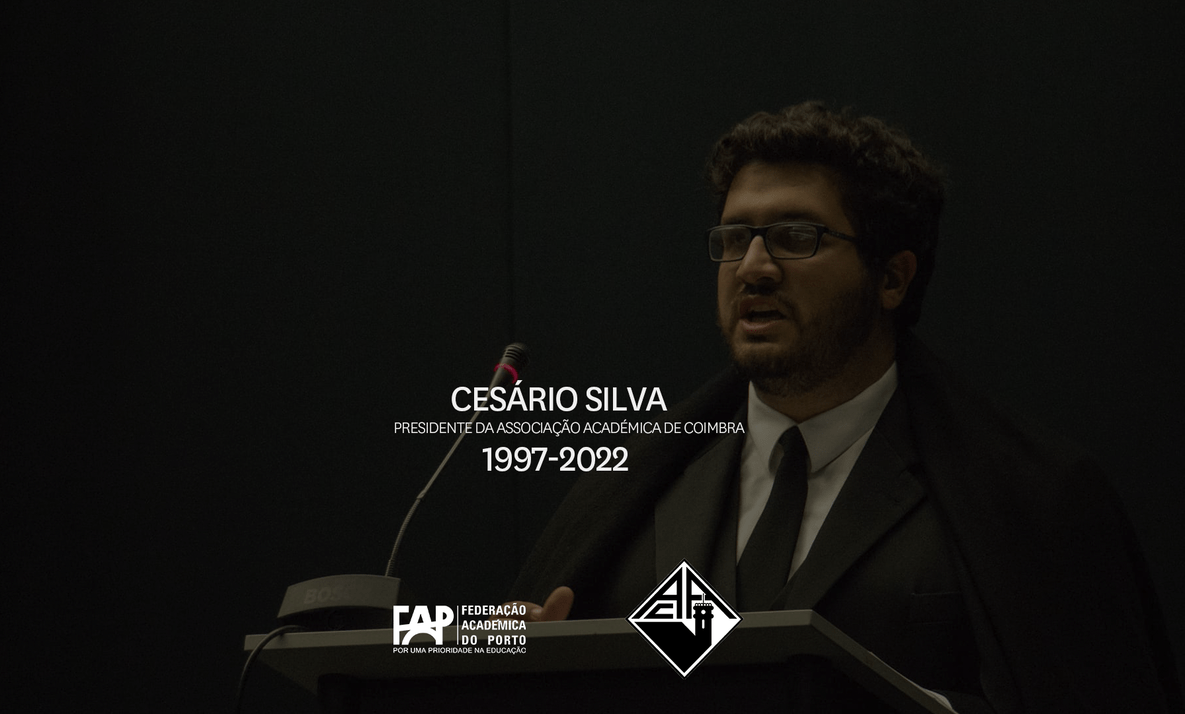 A Federação Académica do Porto vem manifestar publicamente o mais profundo pesar pelo falecimento precoce e trágico do Presidente da Associação Académica de Coimbra, Cesário Silva, e endereçar à Família, aos Amigos, aos Estudantes e à Académica as mais sinceras e sentidas condolências.