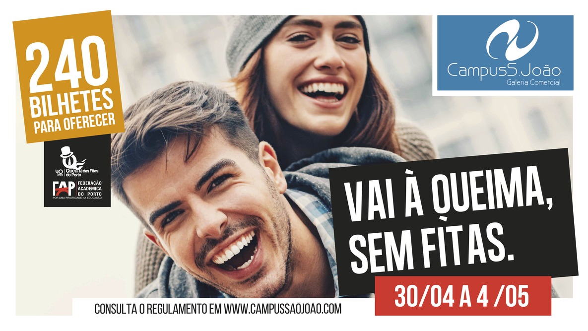 De 30 de abril a 4 de maio, o Campus está a promover a campanha "Vai à Queima sem fitas" e tem 240 bilhetes para te oferecer.