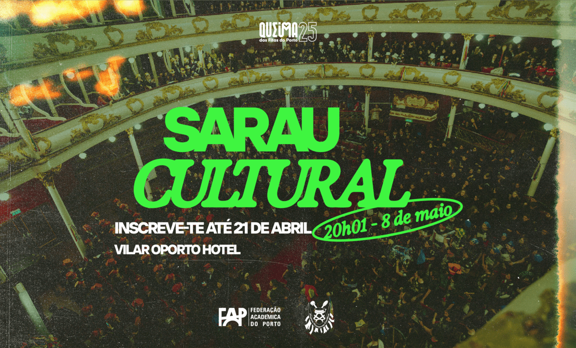 O Sarau Cultural junta-se ao programa das atividades académicas da Queima das Fitas do Porto 2025 para um serão dedicado à cultura da Academia portuense, com atuações que vão da música ao teatro, passando também pela dança. O evento decorre no dia 8 de maio, no Auditório Grande Oporto Vilar Hotel, e conta com a participação de oito grupos académicos.