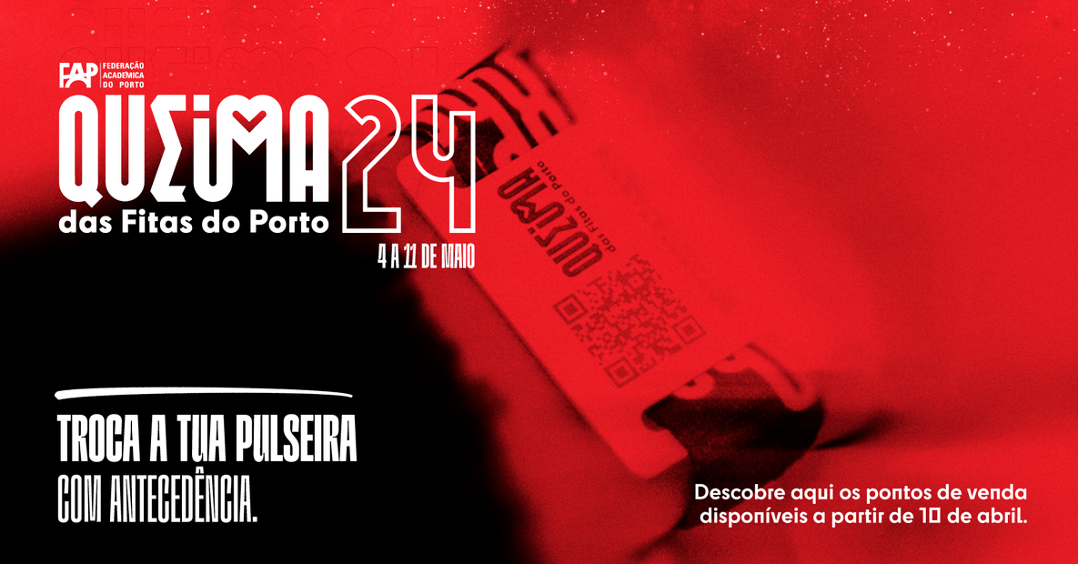 A partir do dia 10 de abril, quarta-feira, já poderás trocar o teu bilhete diário ou passe geral da Queima das Fitas do Porto por pulseira. Uma vez que não haverá dinheiro físico no recinto, a Federação Académica do Porto reforça que a troca é obrigatória e só poderás entrar no Queimódromo do Porto se tiver a pulseira devidamente colocada no pulso.